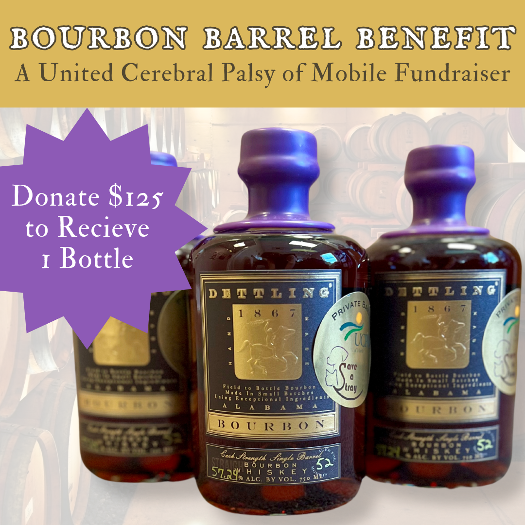 Help us "pour the possibilities" for individuals with disabilities with this fundraiser! Donate $125 or more, and you'll receive a bottle of Dettling 1867 bourbon, from a private barrel selected by our representatives along with local animal welfare nonprofit Save a Stray.